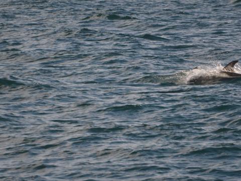 Report from Hafsúlan: The sky cleared up again this afternoon with more sunshine for our whole tour. Once again the sailing conditions were really nice too and on the way out our sailing was very smooth. It took us some time to find our first animals though, around an hour of sailing before we saw some huge splashes in the distance. As we got closer we saw that this was a pod of white-beaked dolphins that were leaping high into the air and causing a big splash. This would be our first pod out of 3 pods of dolphins that we could see. The second was the best as it was interacting and bow riding with our boat, a really memorable sight. The third was also leaping high into the air. So all of the dolphins were putting on a show today! We did see several minke whales in a small area but all of them were elusive and it was difficult to see them often, there were numerous times to see them so everyone will have seen at least one whale but they were not as entertaining as the fantastic dolphins!