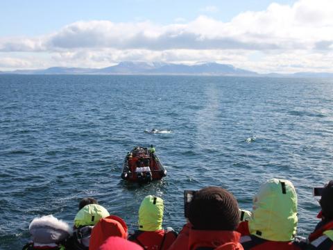 Report from Eldey: The visibility over the bay was still good, but the wind had picked up. After sailing for about an hour 4-5 harbour porpoises showed up and they where easy to spot because of the splashes at the surface. We kept heading out further in the bay, where a minke whale was found. It was difficult to predict the behavior of the minke whale, there must have been two individuals in the area. At the end of the tour, we where so lucky to see a beautiful humpback whale, that gave us some great sightings and even shoved the fluke. The sun was shining and it looked great when the humpback exhaled, we could see the rainbow in the blow. After about 30 minutes of enjoying the humpback whale, we headed back to Reykjavik.