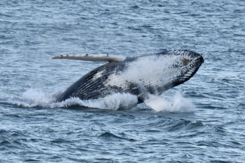 Report from Hafuslan and Eldey: The sun was finally out as we set off today excited to find more whales. Hafsulan set off first and very quickly spotted a blow from the first humpback whale. This was the first of 3-4 during the trip along with a grey and harbour seal. The whales were very spread out meaning we got to see them each individually. One was by far the most active as we saw it breach twice before loads of pec slaps too!! This was incredible for everyone on Hafsulan to see! We then carried on to watch the other whales and had a great time enjoying the cold and sun. Then we both heading back to the harbour full of very happy boats.
