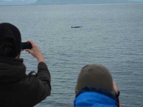 Report from Hafsúlan: The sea was so calm this afternoon and we only had to sail for about 30 minutes before we spotted the first Minke whale out of at least 11 different individuals that we saw! There was also alot of bird life in the area and most of the whales that we saw seemed to be feeding, one minke whale even rolled very close to the boat. We managed to see a few animals close to the boat as they seemed to be very calm around the boat. Not only did we manage to see and hear the minke's but also we could smell the horrible breath a couple of times! As we sailed back to the harbour we spotted a minke whale called Elephant and watched it surface a couple of times in the afternoon sun. It was a calm and nice tour in a beautiful weather.- Freydís Ósk Tour at 14:00