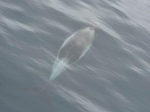 Report from Elding: the life in the bay seemed to have slowed down a bit since the morning according to Hafsúlan. The first Minke Whale we saw was seen surfacing a few times but then we decided to leave it alone when we saw a small group of White-beaked Dolphins in a distance. We went there but they played hard to approach. Two Northern Gannets diving close by stole our attention (or that of the guide!) for a bit but then two further Minke Whales popped up through the calm surface. We enjoyed their presence a bit before the dolphins took over the show with a spectacular finale; many close approaches, swimming under us, towards us, lunging and so on. This has definetly been the day of the Dolphin!