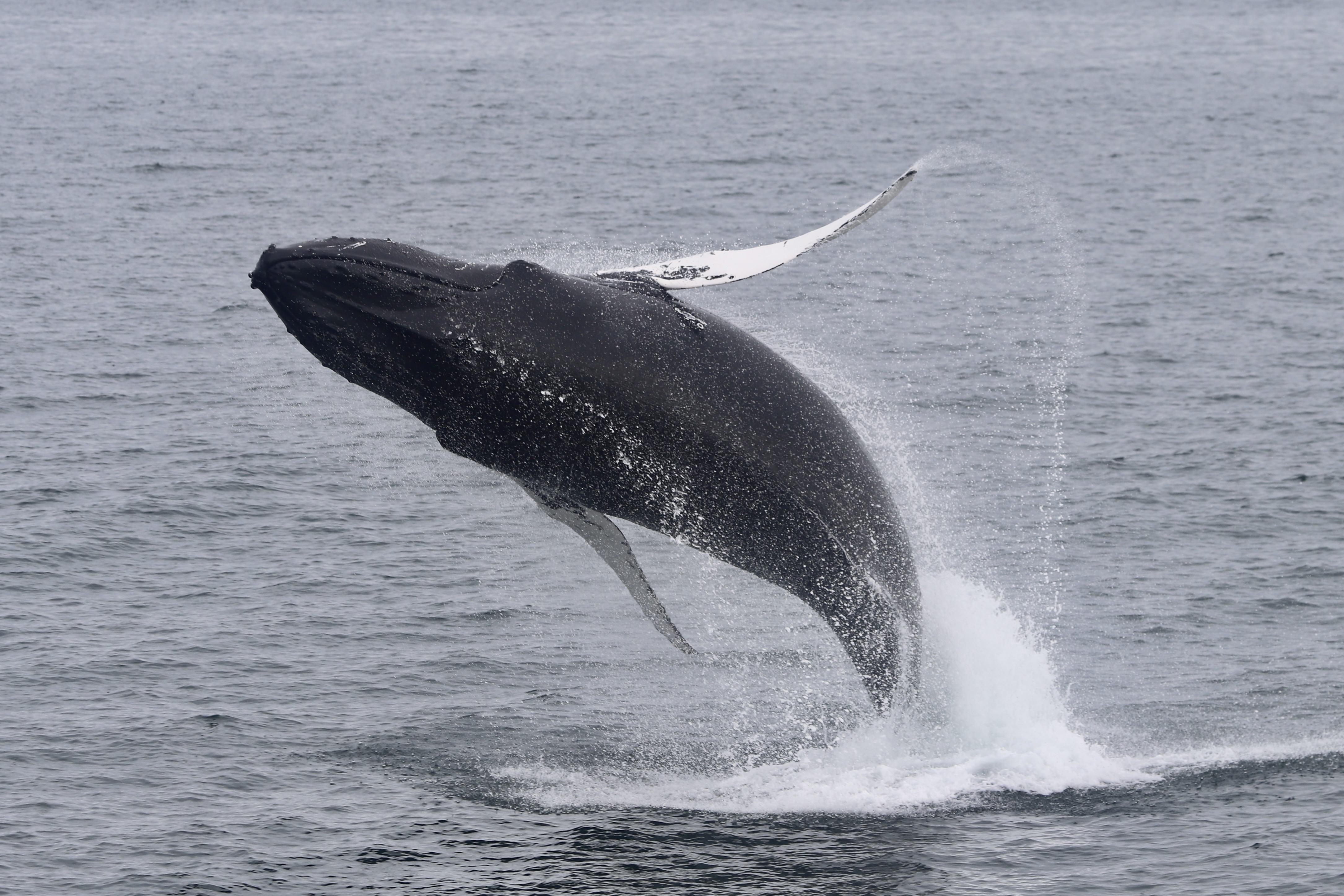 Report from Eldey: This morning offered some of the best sea conditions that we have seen in a while. It was almost completely flat and almost no wind. After not too long some small triangular dorsal fins popped up. It turned out to be about 5 harbour porpoises. These animals are very cute but quite elusive so we did not make a stop, but admired them from a distance. After this encounter we had roughly 6 minke whales coming up now and then around the boat at various distances. However, some big repeated splashes caught our attention in the distance. This was a breaching humpback whale!!! As we got closer it switched behaviors and started to do pectorial fin slapping. It kept going and going and rolled on its back and circled the boat extremely close. It was one of those moments were I (the guide) stopped talking and we all just soaked in this gorgeous moment with this playful young individual. Sometimes it disappeared for a bit and then did a full breach. One of them was right next to us on the right side which completely chocked all of us. It did not seem like this young one had any spatial awareness. After seeing more boats approaching we headed off in order to see something else. It did not take long until two more humpback whales appeared, where one repeatedly did tail slaps. We did a quick stop, and as we headed back to the harbour, one of them started to breach in the back. We did a little loop to get closer, but as it started to do pec slapping again, we continued. I do not think that any encounter can beat the one we got with the first individual. We felt very satisfied with this tour as we set sail towards Reykjavik. This tour was absolutely incredible!!!
