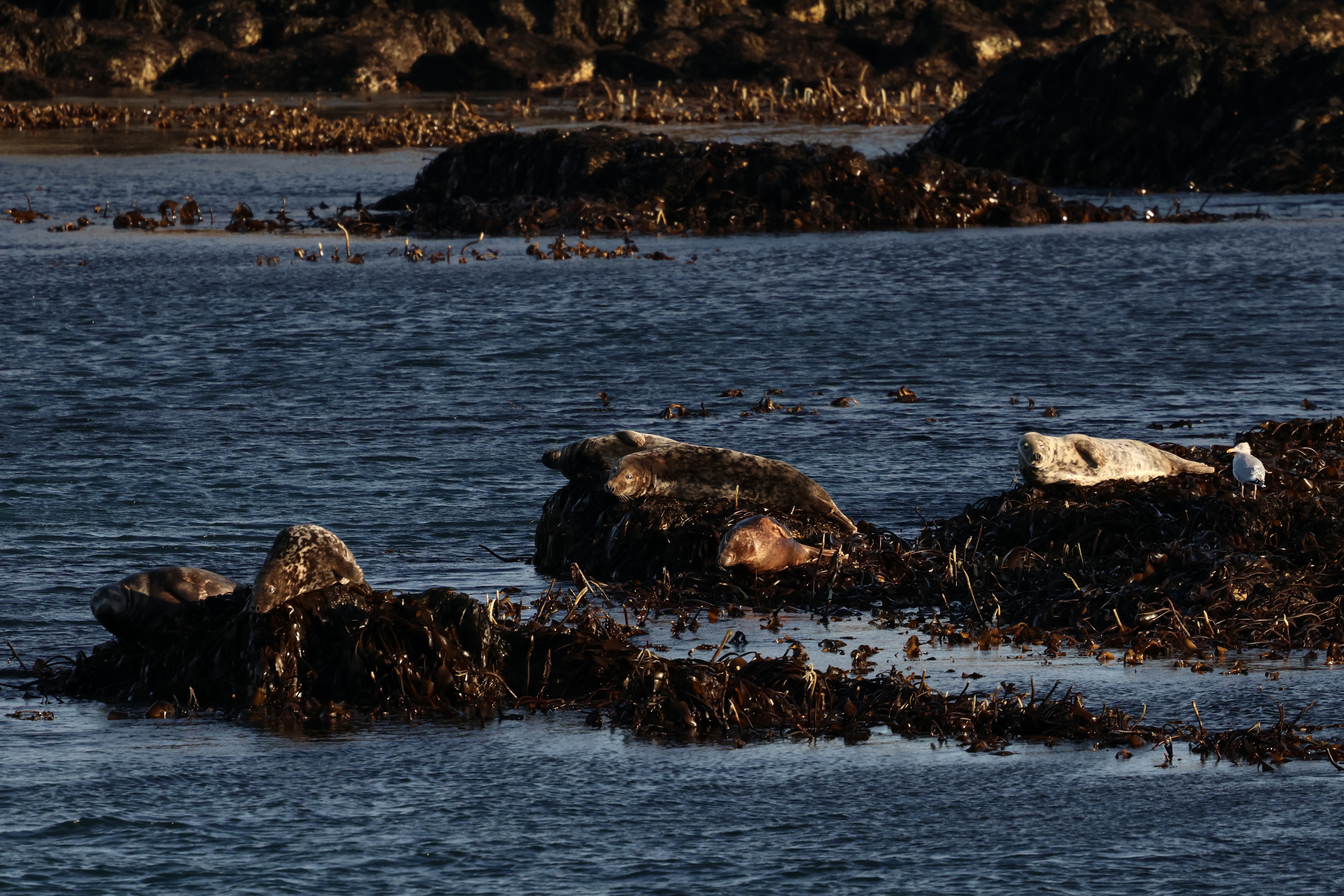 Report from Eldey: This morning, we had beautiful calm seas and a stunning sunrise under the clouds. After passing Viðey, we saw two blows in the distance. As we got closer we saw it was 2 humpback whales, the same pair that we have been seeing for a while now. Banana and their friend were very relaxed this morning. Still waking up with the sunrise. They were swimming very slowly and logging right next to Viðey. Sometimes in water so shallow we couldn't follow them. After watching them for a while, we continued our search around the islands when another boat arrived in the area. Unfortunately, we didn't find anything else so we headed back to our humpback pair. When we arrived the second time, they had woken up and were feeding under some birds! We were even treated to a few fluke dives! In the same area were 2 grey seals calmly bobbing at the surface too. A wonderful way to finish off the tour!
