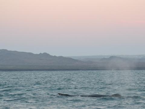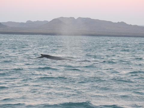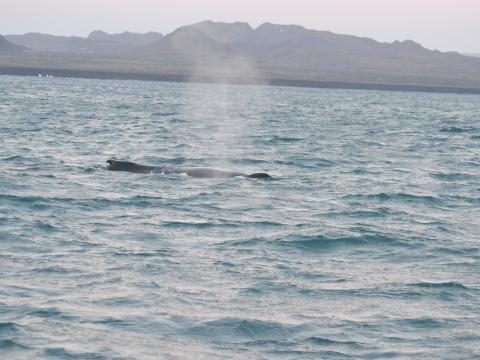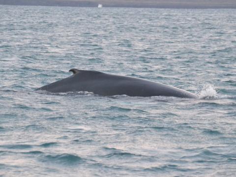 Report from Elding: Today we started our tour in Grindavík because of the adverse sea conditions in Faxaflói Bay. The sea was quite calm for most part of the tour so we could see animals from great distance. We sailed east and it wasn’t until we had turned around that we saw the first sign of cetaceans. Group of 4-5 white-beaked dolphins showed up, they were little elusive but we could follow them for a while. We sailed further and saw then another group of 4 dolphins, they were very calm and we sometimes got them close to the boat. While we were watching the dolphins we noticed a much bigger animal on the other side of the boat, a humpback whale!! It was in about 350 meters distance, but we stayed in the area for some time. It was most likely feeding because we could see a lot of fish under the boat with our fish finder. The whale spent some time between surfacing but every time it came up it came three or four times in a row so everyone got a really good look at it. Once the whale came in about 10-15 meters distance to the boat that was just amazing!!
