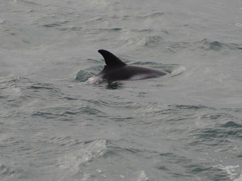 Report from Hafsúlan: it had cleared a little bit since the morning tour, it was still full overcast but we were at least able to see towards land for through out the whole tour. we began by going to the area where we had seen the minke whale this morning. we soon got a call from another whale watching boat that they had seen a group of white beaked dolphins. when we came closer we saw they were at least 6-7 dolphins there. they kept calm and traveled slowly around and at first it was very easy to follow them. then it became a bit more difficult but still we could enjoy their company for over 20 minutes. we again tried to find a bigger animal on the tour but were not able to before we got back to Reykjavik.