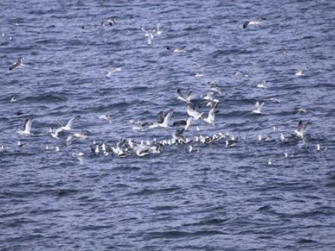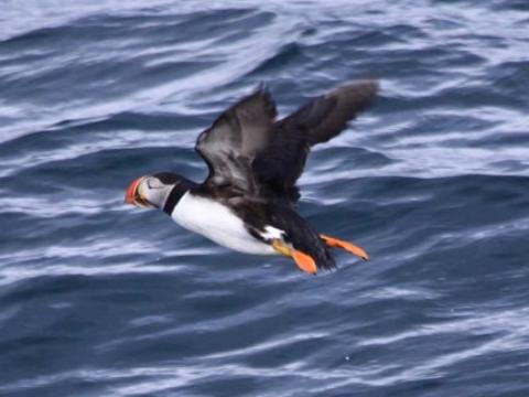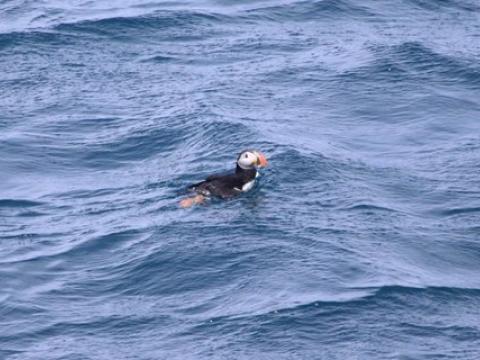 Report from Hafsúlan: We sailed out this morning with some wind coming in from the northwest but overall conditions were okay. Today we had to sail about nine miles out to sea hoping to find signs of life. It started with flocks of feeding arctic terns and puffins. WE sailed from one flock to the next, hoping whales would be attracted to the food being eaten by the birds. It took a bit of searching but then a splash was spotted and soon its owner emerged, a Minke whale! This individual was quite elusive though and we lost track of him relatively quickly. Undaunted we continued our search further out into the bay observing the bird life around us, including skuas attacking the smaller arctic terns. We were almost twelve miles out when we found a second minke. This individual surfaced right next to the boat, not even 10 metres away! It then proceeded to surface a few times close to our left hand side, giving us a very good look at it. Not long afterwards we spotted our third minke and then we had to head back to Reykjavík after a good tour.
