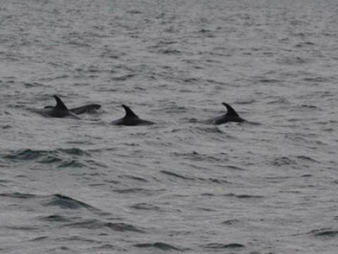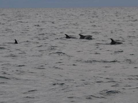 Report from Elding: As we headed out into the bay for our midnight tour it was still fairly windy and the lighting conditions made it difficult to spot animals in the water. Nevertheless, some of our very talented spotters found a pod of White-Beaked Dolphins. They would have been extremely difficult to spot had they not been leaping and breaching out of the water! As we moved closer their behaviour got a bit more calm, but they still showed us a good part of their bodies as they travelled through the waves. At one point a part of this fairly large pod (at least 7-10 individuals) passed right underneath our bow and we could follow the light parts of their bodies through the water surface. After leaving the dolphins behind we moved on in search of something larger - but were unfortunately not successful. But since the dolphins as well as our musicians had given us a great show we still returned to the harbour contented...