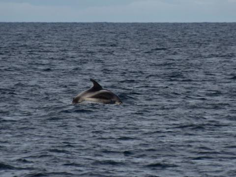 Report from Eldey: It didn´t look like October at all. From early morning we enjoyed sunshine, calm wind and flat sea. Few clouds above land only make landscape looks better. We had perfect spotting conditions so it wasn´t surprise that very fast we found our first cetaceans. In fact, it would be hard to miss it, as white-beaked dolphins were jumping high above water surface. It was pod of around 8 individuals. When we came closer they only did not stop jumping but even approached us with curiosity, swimming around us and taking dives under our boat. It was great! Soon more boats arrived so we decided to go further to not stress this animals. But just few minutes later we found another smaller pod of this dolphins. Again, after awesome encounter we started looking for something else. Next was minke whale, which at the beginning was a little bit elusive but at the end it surfaced few times less then 20m from boat so we had opportunity to take good photos. On the way back, close to the harbour we found pod of 6-10 harbour porpoises which were feeding under flock of small sea birds. Today even porpoises were friendly and our passengers could easy take photos of them and that very rare!