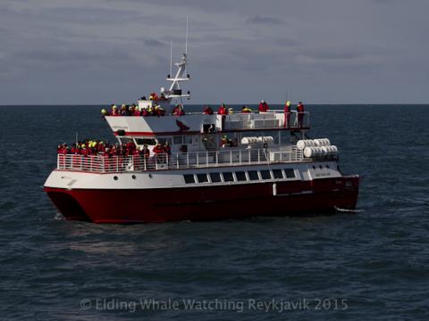 Report from Hafsúlan: It was getting windier and the swells were getting taller than in the morning tour. The sailing was comfortable when we went out on the bay because then we were traveling with the swells but on the way back to land it was quite rough. We sailed towards the areas where we had found the minke whales in the morning tour. there seemed to less birds around and even though we never stopped looking for the minke whales we were never able to find them. 4 times over the tour we saw harbor porpoises, very small species of cetacean, 3 times we saw them close to the boat but we were never able to follow them for long time. Because these were our only sightings on the tour we decided to offer all of our passengers complimentary tickets so they can come in a another whale watching tour with us.