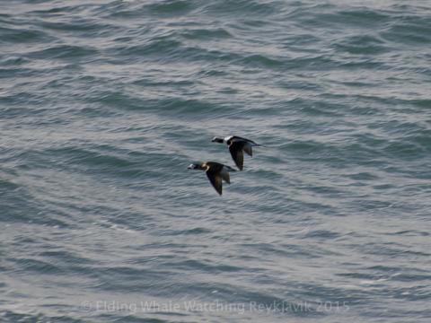 Report from Hafsúlan and Elding: It was a stunning but bitterly cold morning out on the bay with a fresh layer of snow on the mountains the landscape was stunning, we used both of our whale watching boats going out with over 200 passengers and there was enough minke whales for all. It wasn't very long, maybe 20 - 30 minutes after leaving the harbour that we got to see our first of 2-3 minke whales of the tour. They stayed their distance this morning but we all got to see them many times and hopefully got some nice pictures with the snow covered mountains in the background. We saw many seabird species too which are all listed below. Each of our boats also where lucky enough to also spot a pod of harbour porpoises (2-3 individuals) traveling fast past. A fantastic but cold morning out on Faxafloi Bay.