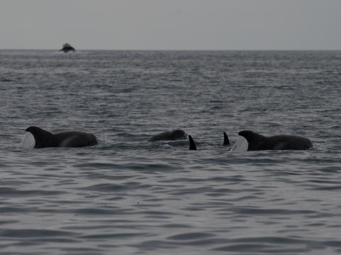 Report from Hafsúlan: On our afternoon tour we headed straight for the humpback whale that we encountered on our morning tour. Traveling west, without stopping we saw several cetaceans in the distance, minke whales, dolphins and harbour porpoises. When we arrived in the area with our favorite juvenile humpback whale, it was already feeding on the high amounts of fish in the area. Even from the boat you could see several clouds of fish underneath the water surface, which were quiet reduced by this one individual. We watched it surface feed for a while, even lunging once, until we had to head back to the harbour, since we were so far out. On our way back we encountered minke whales and white- beaked dolphins, which were at some point giving us quiet a show infront of our boat, with some acrobatic jumps. Estimating 2-3 minke whales and 2 pods of white beaked dolphins with around 15 individual animals.