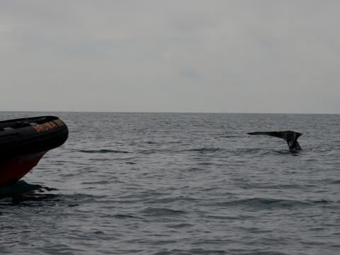 Report from Hafsúlan: On this very beautiful morning we were very excited to go out on a whale watching tour since the seaconditions were perfect, there was basically no wind and we had sunshine as well. We were heading straight to the area where the first boat of the day spotted a humpback whale, taking a chance and hoping that the animal was still around. Even though we didn't stop for any other animals, we still had several encounters with minke whales as well as a quick view at a harbour porpoise. When we reached the location we were traveling towards, we immediately saw the humpback whale, close to one of the rib boats that were in the area. We got to spend quiet a long time with that calm and small individual, getting a very close look until we had to head back to the harbour. On our way back we spotted another minke whale close to the boat as well as jumping white- beaked dolphins in the distance. Estimating 4 different minke whales, 3-5 dolphins.