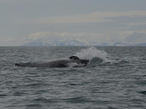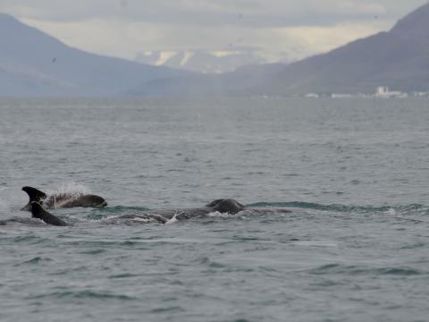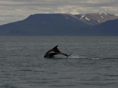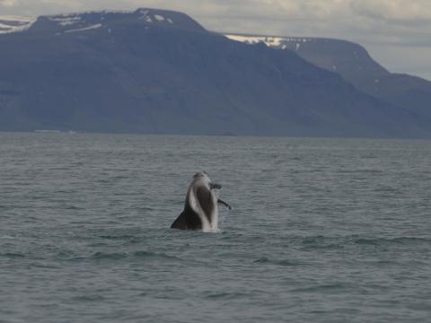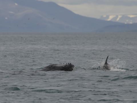 Report from Elding: We took a gamble on this morning tour. We decided to head straight out to the area where the humpback was seen yesterday. This meant that we didn´t have much time to stop for anything else since we had to travel for a little more than an hour to reach the area. The weather was superb with a flat sea and sunshine. It didn´t take long until we passed by a pod of 4-5 white-beaked dolphins and 2 minke whales on our way out in the bay. It felt bad leaving these animals with only short glimpse but we had a mission... Soon it all paid of, a big blow was seen infront of us and it could only be one thing. A humpback whale was feeding close to the surface. We could see it rolling around and launch feeding on a big school of fish. When the whale came up the surface started boiling of fish trying to escape the whales mouth. Amazing to see! On our way back we encountered one more minke and the pod of dolphins, but also 2-3 harbour porpoises. Making this a 4 species tour, a great start of the day!