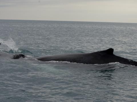 Report from Hafsúlan and Elding: Due to a large number of passengers we went out with two boats, a German one and a general whale watching boat. After two tours heading out very far in Faxaflói bay to have a look at the young HUMPBACK WHALE, we decided to continue to do so, since the animal seemed very calm in our presence both times. While traveling out we saw several marine mammals further away from the boat, but we still kept going to reach the whale as fast as possible. When we did, the animal seemed to be resting. This state changed very quickly when it started to move faster. The animal gave us a very good look at it's fluke while it was going, what seemed to be a deep dive, but on the contrary, it was a way to get some speed for the animal BREACHING infront of our boat. All the people on board were speechless as the animal was going for another "dive", and just as we informed the passengers that it could jump again, it completely came out of the water and turned as it was clashing down into the water again. This continued for several more times. We looked at it breach as long as we could until we had to turn back. On the way home our luck seemed to continue, seeing two pods of white beaked dolphins with at least 15 different individuals as well as a minke whale a few hundred meters away. This was undoubtedly an unforgettable tour, with memories that will last a lifetime.
