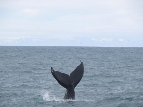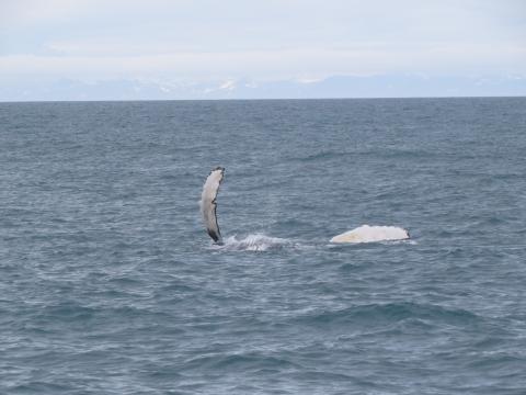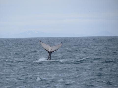 Report from Elding: The sun showed up through the cloudy morning that we had giving us some energy for the whole tour. We were a small team this time but very in the mood to see some cetaceans. Half an hour after we left the port we spotted a harbour porpoise that passed by the side of the boat for a few seconds giving us the first encounter of the day. We kept going out within Faxaflói, and we came across several minke whales, however they were always far in the distance and not more that two times at the surface in a raw. They were a bit elusive, so we decided to keep going and we ended up finding a humpback whale, which was resting in the area, and not very active at the surface, so we decided to leave it behind and looked for something else. Looked like the Bay was a bit relax during the whole afternoon, and just when we were going to head back to the harbour we spotted the same humpback few kilometers away while it was breaching, so we decided to check it out even knowing that we were going to be a bit late back home, but that was definitely the best decision ever. Once we were closer to the animal we realize that it was fluke slapping against the water, and it did it for 30 minutes, together with some breaches and pectoral flipper slapping, rolling at the surface... We stop the engine and enjoyed in silence of the incredible animal that we had in front of the boat. It was just a display of joy! Totally worth it to come back a bit later to the harbour. In our way back we spotted some harbour porpoises that checked us out coming closer to the boat. It was a good last chapter for the week here in Elding, thank you for coming today and enjoy the evening!