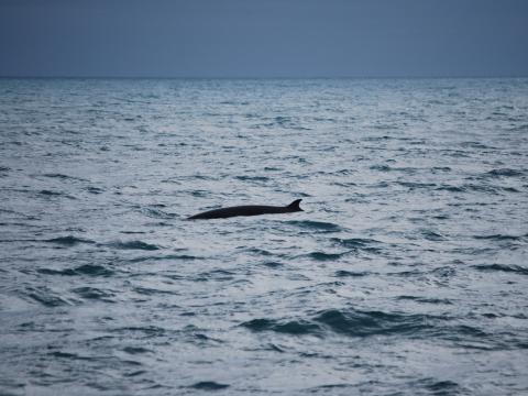 Report from Elding - Following the fantastic morning sightings of all 4 species we were extremely hopeful to find some cetaceans, especially as the wind had calmed out to sea. We traveled in the direction of Akranes where the whales had been sighted earlier, and after 45 minutes saw not 1 but 3 minke whales surface at 200, 500 and 800 m in front of the boat. We stayed a little however our wonderful captain spotted a big blow 1 km away on the horizon amongst a big flock of birds, so we headed in that direction. Once we reached the area a humpback whale surfaced within 100 m of the boat! We could see the outline of this individual resting under the water due to the bright sunshine, and so predict its surfacing to the delight of many passengers on board. After a half hour we decided to let the other boats enjoy this individual´s company and tried to approach 2 minke whales we had seen surfacing towards Hvalfjörður whilst watching the humpback. Although they were behaving elusively we did have one individual come up 150 m from the boat, back glistening in the light, and with that we decided to head home with the gorgeous sunshine to our back.