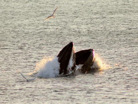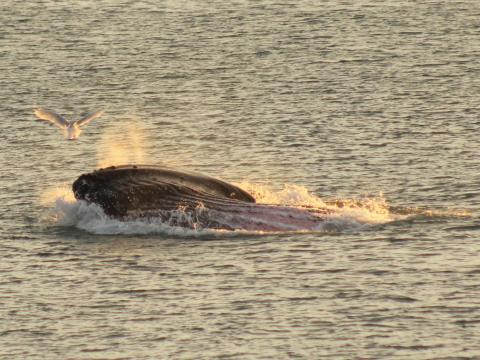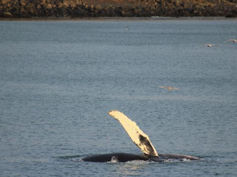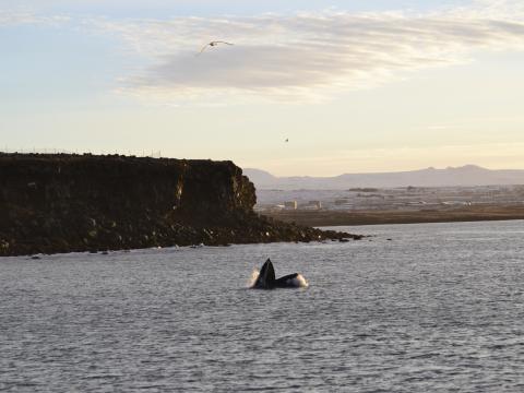 Report from Eldey: What a day to be in the water. Not only weather conditions were e-x-t-r-a-o-r-d-i-n-a-r-y with clear skies, calm seas and fantastic views from Reykjavik and its surrounding area, but wildlife was simply breath-taking. We went to check a spot in Kollafjordur in which we have been very successful last days and we weren't disappointed. There it was, our most loyal humpback whale traveling, chasing fish, lunge feeding, rolling over itself and waving to us with its huge pectoral flippers. This animal gave an incredible show and birdlife around the fjord was even better. Smiles were seen everywhere onboard when we headed back to the harbour witnessing a beautiful sunset. Another great time in the bay.