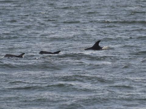 Report from Eldey: Sun! We almost forgot what a pleasure it is to sail under the shining sun, so this morning we were in heaven. It was super warm and the sea was flat. It was easy to spot minke whales, as the animals also seemed to enjoy this nice weather and were often coming  to the surface. With these perfect sea conditions it was also easy to see many harbour porpoises. To start the day even better during the tour we encountered 2 pods of white-beaked dolphins. First pod of around 8 individuals was swimming slowly around our boat and the second, which we found on the way back, was much more active - from the distance we saw jumping dolphins, when we got closer some of them attempted to bow ride our boat and later with splashes swam fast in the direction of the bay.