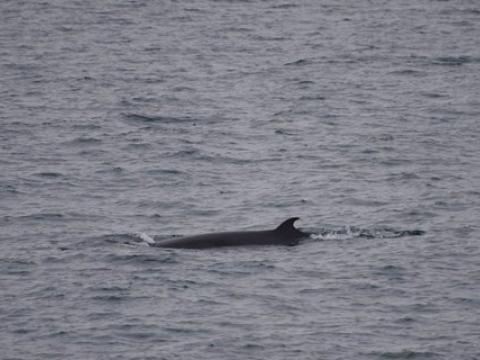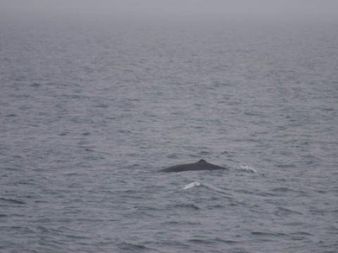 Report from Elding: The first midnight tour of the summer was conducted tonight! It was cloudy this evening so unfortunately we didn't get a look at the midnight sun, but still the weather was calm and nice although it rained a little bit during the tour. We spotted 3-4 Minke whales in the tour but it wasn't until we saw the last two when we got a very good sighting. The first minke's seemed to be in a hurry and only surfaced 1-2 times before they disappeared. As we sailed around we spotted a flock of birds and around them, two more minke whales. They were obviously feeding and we even saw them bubble feeding at one point! They surfaced around us and sometimes very close to the boat. We did not only manage to see them close up and hear them but also one of them had a horrible fishy breath which we could smell for a couple of times! On our way back to the harbour Eiríkur the musician played his guitar and sang songs and kept us entertained. It was a good tour in a calm weather, although the midnight sun wasn't visable the minke sightings and their bad breath as well as the good music on our way back made the tour very enjoyable.-Freydís Ósk