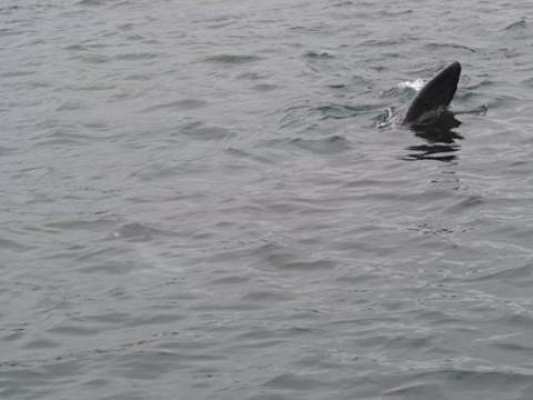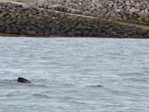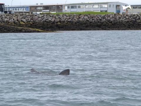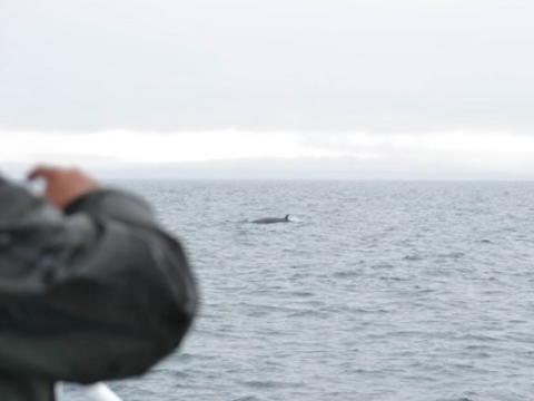 Report from Elding: The rain had stopped and it looked like it was clearing up this afternoon. Right outside the harbour we saw a Basking shark which surprised us amazingly! The animal was just beautiful (in it's special way of course) and it was very calm around the boat and we got a perfect view at the animal as it swam right up to the boat and we could see it's whole body and it's big open mouth as it was filter feeding in the surface! As we sailed further out we spotted around 4 Minke whales. They seemed all to be in a bit of a hurry as they surfaced quickly and then took long deep dives. The last minke we saw allowed us to get a better look at it as it surfaced close to the boat for a couple of times. It was a good tour which was definately topped by the beginning sighting of the great basking shark ! - Freydís ÓskTour at 13:00