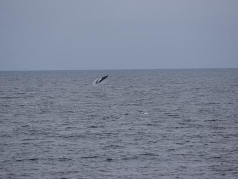 Report from Eldey: The sea continued to stay relatively calm on this afternoon tour with some winds from the west. The first cetacean we saw after about 30 minutes was a minke whale surfacing. While we were heading towards it, we got news from another whale watching boat that they had seen a humpback whale so we decided to check it out. When we arrived the humpback whale was probably sleeping and therefore not so active, however we spotted a blow of another humpback whale about a kilometer away and decided to check it out. On our way there, we saw it breach multiple times and once we got close everybody got the chance to get good views of the humpback. After up to an hour the humpback waved us good-bye with it's fluke and it was time for us to sail back. As we were heading home we also saw another minke whale and some harbour porpoises. We had a very successful tour.