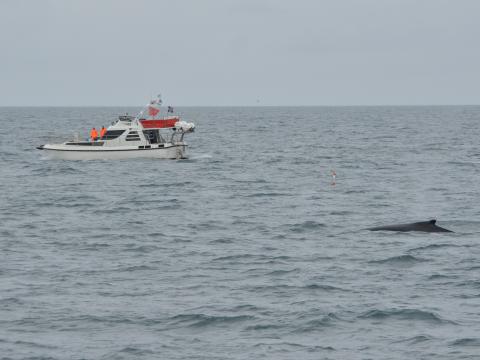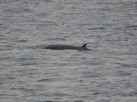 Report from Eldey: Like our sister boat Hafsúlan, we went out from Reykjavík in the morning and made our way towards an area where a humpback whale had been spotted. After about 50 min we found it and identified it as the humpback whale "Þröstur" that we have seen on many tours over the last weeks. It was going for deep dives a lot lifting its fluke out of the water; however, it never stayed underwater for a long time. While watching Þröstur we also spotted about 4 scattered minke whales surfacing around us and spent also a while with them. After around half an hour we moved on to look for dolphins. We headed further offshore but didn't find any signs of them and slowly started heading back to the harbour. On the way, we came across Þröstur again which was feeding in the same area as a minke whale and tons of birds.