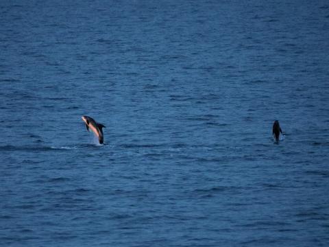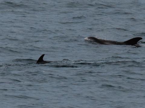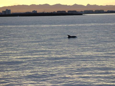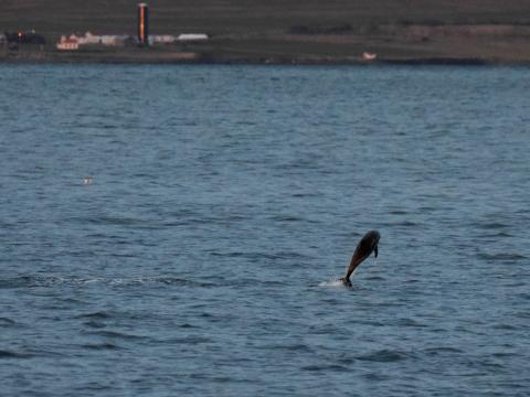 Report from Eldey: Today was the day for sailing. Completely flat seas, not even a light breeze and zero signs of waves in the horizon, everything worked perfectly to have an enjoyable ride out there. We started sailing around the islands in front of Reykjavik trying to find our well-known whale, it seemed that today was its day off as we couldn't find it. Nonetheless, we found a pod of 6-10 harbour porpoises straight away next to the island of Viðey which were swimming graciously among some flocks of razorbill and black guillemots. Once we decided to sailed towards Faxafloi, we weren't disappointed. It wasn't only the amazing landscape and the never-ending sunset but we found a pod of 8-10 white-beaked dolphins. The big surprise for was about to reveal as we witnessed 2 calves among the group, one of them had visible fetal folds in its tiny body (they can last up to 6 months but they are perceptible to the eye within the first 2 weeks). These 2 dolphins were very playful as they were performing a bunch of tricks: leaping, head-slapping, tail-slapping and surfacing very close to their mothers. It was a pleasure to be able to see such an amazing nature-show.