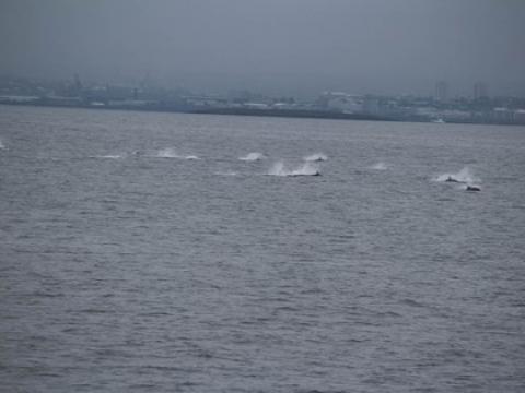 Report from Hafsúlan: We headed out from Reykjavík into the fog and out onto the smooth sea. The fog cleared and we could see the beautiful Reykjanes peninsula behind us. It wasn't long before we came across a large pod of Harbour Porpoises. These porpoises were jumping quite a bit and seemed to be very outgoing despite their shy nature. We continued out and spotted our first Minke Whale. This whale appeared about 50 meters from our boat and came up several times letting itself be shown. We continued out and came across three minke whales who seemed to be feeding in the same area. These whales were very busy feeding, but we got a good view of them and it was quite fun trying to guess where they would appear next. After watching them for a little while we decided to continue on our way, but did not get very far when we came across a large flock of puffins, guillemots and gannets. We sailed towards them and sure enough a minke whale appeared from underneath them. Overall there were probably 5 to 8 minke whales that we were able to see and possibly 25 harbour porpoises. The trip ended with a stop at Akurey ( one of the puffin islands) where we got to see more puffins sitting int he water just outside their homes.