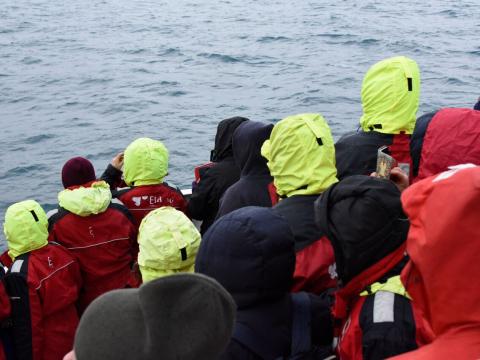 We are sailing out from the Old Harbour in Reykjavik. There is some wind out on Faxabay so there will be some movement on the boat. If you are sensitive to motion sickness we do have seasickness tablets free of charge at the ticket office. All our boats have inside and outside areas and to make the tour even more comfortable we provide warm overalls. Hope you will be able to join us on our tours today. For more information please contact us via phone at +354 519 5000 or by e-mail at elding@elding.is.