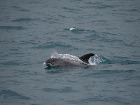Report from Eldey: As yesterday, the sky was covered with dark clouds and the sea was gray, nevertheless we left the harbor in high spirits and a good mood. We headed out to our best sighting area just 30-40 minutes from the harbour and there they where, white-beaked dolphins! They did not disappoint by leaping and jumping out of the water, some even coming in for a bowride. Several pods of dolphins, 15-20 individuals, where feeding between the fishing boats. After some time we decided to leave them and continue our trip. Cruising around for a bit we spotted another group of about 10-15 dolphins including a calf, spread in a wider area, some coming in for a real close up. After wonderful displays of agility and speed, jumping and bow-riding, we parted our ways with a big smile on our faces.