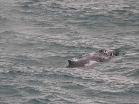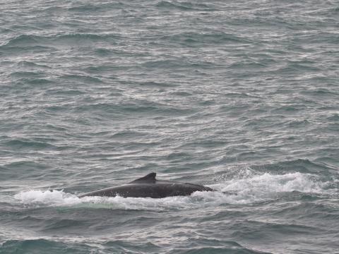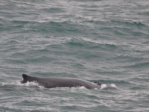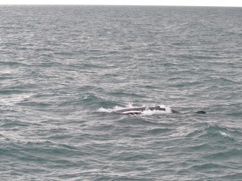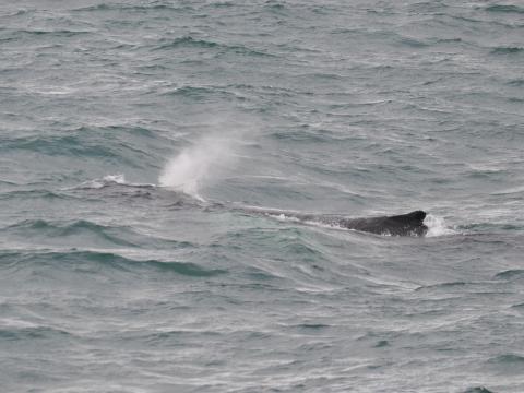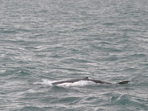Report from Hafsúlan: This afternoon we went out again, hoping for the wind to calm down, and indeed it did, even though it was only a little bit. We decided to continue our search for cetaceans in areas we didn't look in the morning. After a still pretty rough ride our luck changed when we encountered a humpback whale!!! This very small individual, only around 7-8 meters in length seemed to be traveling. We followed it for a while, until it started to feed close to the surface. Unfortunately by that time we were already running out of time. We gave it a few more minutes to get a last look at the animal, especially when it was surfacing very close to where the boat was, less then 30 meters away. After this close encounter everybody was enjoying the not so shaky trip back to the harbour, since we were traveling with the wind.