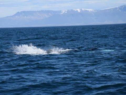 Report from Eldey: What a lovely sunny Sunday in Faxafloi! We went from the old harbour with good feelings and a big smile in our faces as long as we knew that it was going to be a good afternoon. We had a presage. We headed to an area that apparently was full of seabirds, a good indicator of cetacean's presence and we were blessed with the best of the lucks! We saw the blow of a humpback whale in the distance so we got close and we initiated our search. It didn't take too long to locate our humpback breathing and surfacing. But it got more interesting. While contemplating this beautiful animal, we spotted in our back another cetacean in the very same area, in this case it was the minke whale. But it wasn't all! We had to look again to our front because the humpback was still there,and she wasn't alone, 2 white-beaked dolphin were swimming with her! They displayed this behavior for a long time and we enjoyed their company sailing with them while the sun was shinning, it was a magical moment! We left the area to give some space to the animals but it seemed that they enjoyed and we were amused when the humpback whale appeared again lob-tailing a couple of times not far away from our ship. It was such a great afternoon that you cannot ask for anything else: sun, whales, dolphins and good company thanks to our passengers, who became great whale-spotters during the trip!