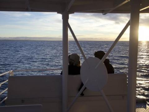 Report from Hafsúlan: Today the weather was very good with the sun peeking at us from under the clouds and calm seas. Before we left the harbour there was a massive feeding frenzy of birds, mainly Glaucous Gulls, Shags, a couple of Black Guillemots and Eider Ducks. After sailing out between Akurey and Engey we headed south towards Hafnarfjordur along the east coast of Reykjavik and began our search. We had been searching for about 50 minutes when we came upon a pod of 5-7 White-beaked Dolphins! They were very social and came close to the boat, swimming just underneath the seas surface, giving us an excellent look at them. We stayed with them for about half an hour and a fantastic time with these amazing creatures. After this encounter we searched a little bit further out into the bay and then headed back to Reykjavik in the afternoon sunset.