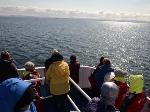 Report from Eldey: The wind had picked up a little so the water was not as smooth as before but it was still sunny and the views around were amazing. When we were sailing for about 45 minutes the passengers spotted a humpback whale close to us. The animal was playfully rolling around to show us its belly and spy hopping close to the boat. It was a wonderful encounter and everybody managed to get a good look. We spotted another humpback whale in the distance and decided to get a closer look. The animal was quite elusive only coming up occasionally to breathe which made it difficult to find. But once we were closer it did surface a few times near the boat. After this encounter we had to travel back to Reykjavik but on our way back a minke whale surfaced 5 meters from the boat. Unfortunately most passengers had gone inside and did not see the animal. We also saw 3 harbour porpoises close to Reykjavik which was a nice ending to a beautiful day of whale watching.