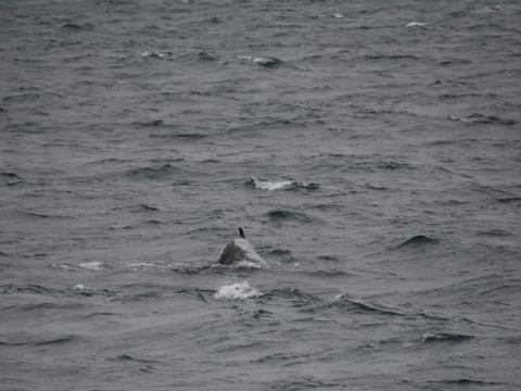 Report from Eldey: It was still pretty windy today but not as much as yesterday and the see was a little bit calmer. After an hour we reached an area where other boats had seen a humpback whale. We waited a few minutes and then also saw this animal going for a dive. But when it resurfaced, we saw it twice coming towards us not even 100 m away. It swam underneath us and popped up again right behind the boat, maybe 5 m away. After this very close encounter, it stayed underwater for a long time and we didn't get a very good look at it anymore. We moved on and headed to a flock of feeding birds, checking for some cetaceans close by. Since we didn't see any whales or dolphins, we had just decided to continue our search and turned the boat around, when a minke whale surfaced 300 m away in front of us. We saw it another time before going for a dive and then saw it a few more times when it came up about 100-150 m away. Due to some waves, it was not very easy to see and we headed further out in the bay. After a while, we saw another minke whale and slowed down to wait for the animal to come up again, but then we noticed a second individual that popped up less than 100 m away from us and surfaced a few times almost in the same spot going in circles. It was super cool to get such a nice look at a minke whale just swimming next two us very slowly. After this experience, we headed back to the harbour with the wind in our faces.