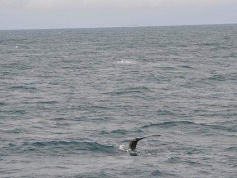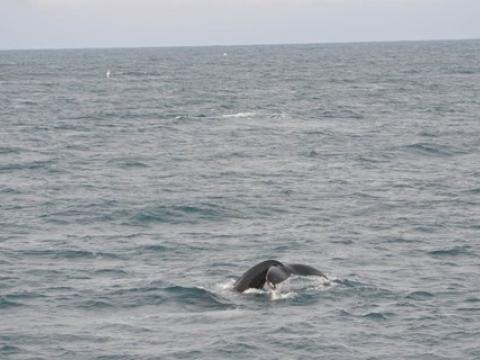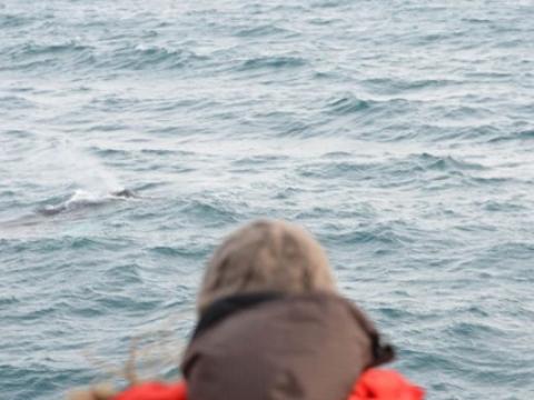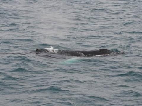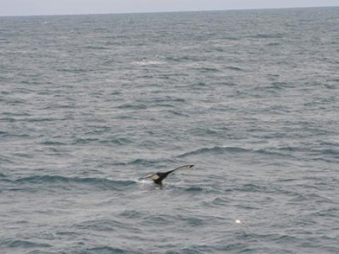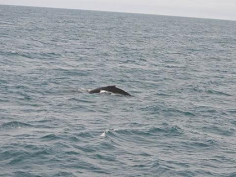 Report from Hafsúlan: Today's Humpback whales were very friendly. We sailed through a big flock of birds before we found the whales. The flock mostly consisted of fulmars and kittiwakes. We were delighted to see a Great Skua amongst the other birds. After admiring the birds for a while we saw a blow further away. When we sailed closer we saw that the blow belonged to one of two humpback whales that were swimming calmly in the seas. They appeared to be a mother and a calf since one was a great deal larger than the other. They seemed a bit curious regarding the boat and stayed close. When we were on our way back a Minke whale joined in. The minke made a brief appearance before we had to sail back to harbour. On our way back we saw a pod of White beaked dolphins, that dissapeared very soon. We then reached Reykjavík after a lovely day in a lively bay.