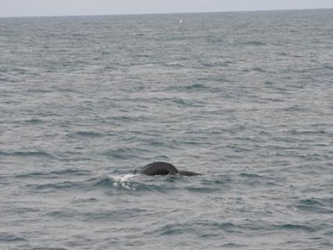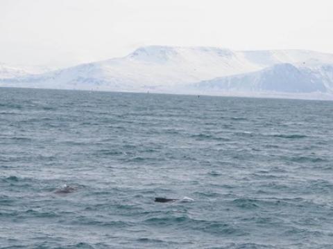 Report from Hafsúlan: The animals we met on our second tour of the day all seemed very preoccupied with feeding. First we saw a pod of Harbour porpoises. They didn't seem boat-shy at all so we stopped the boat and observed them feeding for some time. We then carried on until we saw at least two, possibly three, minke whales. They also appeared to be feeding and changed directions rapidly while some times surfacing close to the boat. When we sailed back we, again, saw a pod of White beaked dolphins for a few seconds before they all disappeared. We then ended back in Reykjavík after a nice day.
