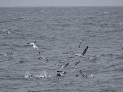 Tour at 10:00Report from Elding: we went through some of our normal search areas before deciding to head west. The south-western wind was a bit strong and waves and white-tops were present. Around half-way into the tour, Captain Hermann spotted a semi-lunging minke whale amidst diving northern gannets, however unfortunately the animal only did it once and then vanished. We continued searching past the town of Hafnarfjörður (where we had decided to arrive back at the end of the tour) and even further alongside the coastline of Vatnsleysuströnd on the northern side of Reykjanes Peninsula. However, with the exception of 2-3 harbour porpoises, our search yielded nothing further so before we got to Hafnarfjörður, we issued all passengers with a complimentary return ticket so that they can come back with us free of charge within the next two years.