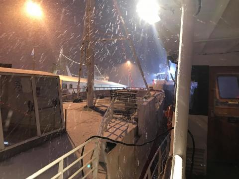 Report from Eldey: A very nice start to Christmas Eve with an influx of passengers this afternoon, we were able to go out with a full boat. The sea conditions were also great, a huge difference from yesterday´s conditions that cancelled the tour. As we left the harbour a long line of great cormorants and european shags stood along the sea wall. It took us a while to see life and found an area in the bay where birds were more abundant and 2 pods of harbour porpoises could be found. At least 7-10 in total, they could be watched popping up from time to time, we tried our best to follow these little guys but they can be difficult at the best of times. We also got to see a nice array of seabirds; glaucous gulls, iceland gulls, black-backed gulls, common guillemots, snow buntings, little auk and a northern gannet. Alas, no larger cetaceans were encountered so we offered our passengers complimentary tickets to come again for free in the next two years. We arrived back at the harbour with a thin fresh layer of snow which ended the tour on a nice christmasy feel.