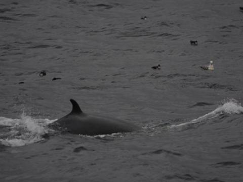 Tour at 13:00Report from Hafsúlan: The sea conditions were still quite rocky as we headed out but the sky was clearing up and at the end of the tour we could even see the sun! We did spot some Minke Whales during the tour, but they only surfaced 1-2 times far away and were very elusive and hard to see. We must have seen around 4 animals and it was obvious that there was some life in the bay, but unfortunatly they were not up for the show in this tour. Although we saw something in the tour we felt it wasn't fullfilling and that's why we decided to give all of our passengers complementary tickets which makes them able to come back for free in the next two years ! Also they will get 15% off at our restaurant MAR (marrestaurant.is) and in our souvenir shop. Hopefully they will find a time to come with us again and get a better look at the Whales. This is what we always have to keep in mind, these are wild animals and they are not under our control, but hopefully they will be friendlier next time ! - Freydís Ósk Hjörvarsdóttir