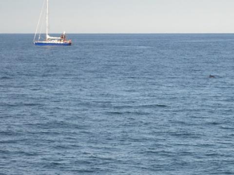 Report from Hafsúlan: The wind had picked up a bit from this morning but the weather was still very nice, the sun shone as we sailed out. We found a minke whaleright away and it came quite close to us. After a while it dove down so we decided to head further. We had to look for a while until a passenger spotted another minke whale. From then on we did not have to move very far and probably saw about 5 or 6 more minke whales surfacing all around most of them moving fast and changing directions frequently. At last we had to leave them behind and head back to the harbour. Great tour in great weather!