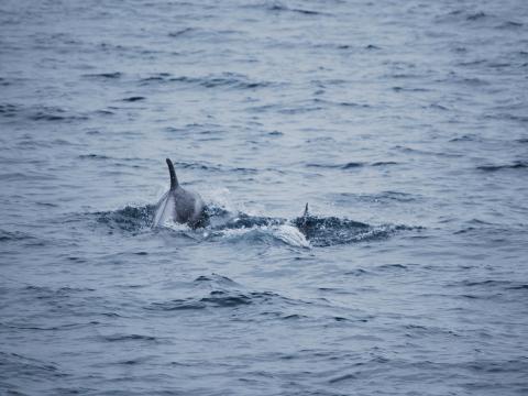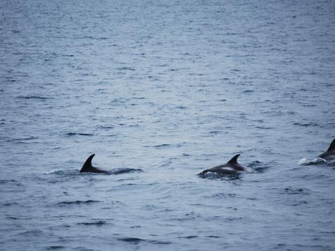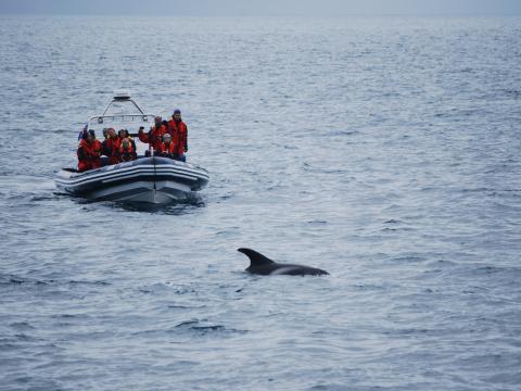 Report from Elding: We sailed out on a light rainy day and grey overcastted sky, but full of positive energy! The sea was pretty flat, making the conditions easier for us to spot the cetaceans. About 30 minutes from the harbour, we got the news from other boats that a minke whale has been spotted in the area just in front of us. The whale was diving when we arrived to the area, so we had to wait for couple of minutes before it surfaced up. We stayed with this minke whale for a while, but it was a bit elusive individual; surfacing just 1-2 times before the dive and staying underwater for long time. During one of those longer dives, while we were waiting, we spotted few splashes nearby so we left that elusive minke and went to check from who the splashes are coming from. As we came closer, we saw they are from 4 harbour porpoises. They were fishing and not paying attention to us so we were able to come pretty close to them. They dived and for a moment we thought they might go away. The very next moment they surfaced and came right toward our boat, so close we could see their full bodies! Really nice encounter! We continued further off shore and soon we came across 2 minke whales travelling together! One was smaller and one bigger and they were surfacing parallel next to each other, so we assume they might be an adult female with a calf/ sub-adult. We stayed with them for a longer time, about 25 minutes, as seeing two minkies travelling together like that is not very usual for this solitary species. After that beautiful encounter, we had another one with other minke whale. This minke was also a bit unusual, as it was swimming pretty fast and changing directions very quick, but staying at close distance to our boat (less than 20 meters!)..Maybe he was fishing in shallower water layers...While staying with this minke, we noticed we are running out of time, so we turned the boat and started heading back to the harbour. Our tour hasn‘t finished though, as we spotted a pod of 6-8 white-beaked dolphins just on our way back! It was a really nice encounter, as the dolphins were totally relaxed, resting at the surface and then travelling really slowly, and even though they had a calf within the group, they didn‘t mind our presence. Actually, after we turned the engine off they came even closer to us! It was lovely to watch this pod so relaxed and up-close.