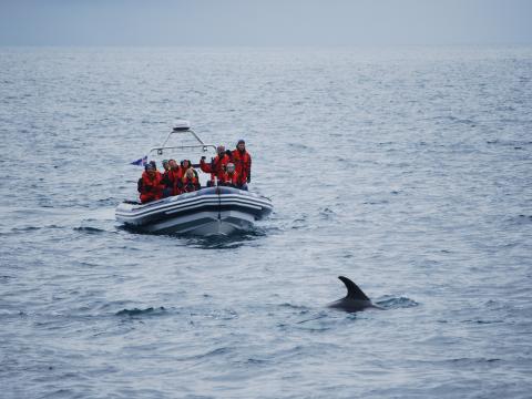 Report from Elding: The weather gave us a small break, without too much wind, nor rain, increasing the difficulty of this tour. However, some dense clouds still covered the skyes and only a few rays of light managed to made their way through them. We arrived to the area in which earlier in the evening we spotted a few minke whales, but unfortunately it seems like every single one of them were gone. We tried to go a little further on, to search them, but luck wasn't by our side. Just at the end of the tour, we spotted a few harbour porpoises swimming really close to the boat, but they disappeared in a few seconds (just as this sneaky animals use to do). Time ran out and we had to go back to the old harbour, but on this tour we counted with the music and the voice of one of our dear singers. Unfortunately we didn't see whales or dolphins, so we offered our passengers some complimentary tickets, so they will have the opportunity to try again in another of our whale watching tours.