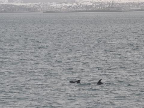 Report from Hafsúlan and Elding: today we went out from Hafnarfjörður due to the swell off Reykjavik and also ended there. We went on two boats due to the number of passengers so that everyone would have as much space as possible on the journey. We left the harbour and headed west; after just few minutes, Gulli the eagle-eyed captain on Hafsúlan spotted a group of 5-6 white-beaked dolphins, to which both boats turned their attention to. Those dolphins showed themselves well, even if they could have been easier to follow as they would spend a lot of time diving and appearing here and there and anywhere. Once they were gone, we went off and continued towards Keflavik and along Vatnsleysuströnd coastline. The visibility was okay for most of the trip so we hoped to find something else but unfortunately, even if we searched all the way to Garðskagi Peninsula and back, nothing else came, although Hafsúlan saw a young common seal very briefly too. Towards the end as we were making our way back to Hafnarfjörður, it was windy and with the current forecast, it looks like it will be Hafnarfjörður again tomorrow.