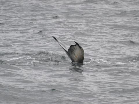 Report from Eldey: We got lucky weather-wise on this tour. The cloud cover was still overcast but the wind had weakened, there was almost no waves and no whitecaps to get in the way of our spotting. About 25-30 minutes after leaving the harbour, we spotted our first blow far away in the background. The animal was about 3 km away from our boat so it took a while before we reached it, but it was worth the wait. We ended up in an area where 3 humpback whales were feeding. It was a little bit tricky to follow them as they were taking long deep dives, and only surfacing a couple of times before going back. Our fish finder revealed that there was a lot of fish close to the seabed, which probably explain this behavior. We recognized one of those 3 humpbacks as our beloved Picasso, one individual we first sighted in 2014 and that got back in Faxa Bay this year at the beginning of February. The patience of the passengers was rewarded by plenty of nice looks at the flukes of those humpback, as they were deep diving. During our sighting, we also got few look at 2 minke whales, and a pod of 4-6 harbour porpoises before we had to go back home. A lot of incredible wildlife out there, including the many seabirds we saw !