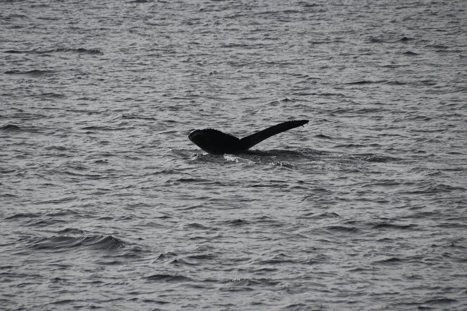 Report from Eldey: Sailing out again this afternoon, the wind and rain picked up slightly, but not stopping us from finding our sought out whales. Going back to the spots we had luck with this morning, we found again 3 humpback whales. 2 of them were seemingly feeding together, whereas the other one was our old friend Davy Jones 2nd, a humpback whale well known of the bay, seen for the last 5 years at this period. Oddly enough, all of them were diving for over 10 minutes each time, as sign that the feeding was happening in the benthos close to the sea floor. However, we managed to stay with all of them for over 30 minutes each, heading back home with everyone fully happy.