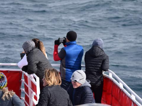 We are sailing from the Old Harbour in Reykjavík today. The weather today is beautiful, but the seas a bit choppy so if you are prone to getting sea sick, we do have sea sickness tablets available free of charge at the office and on board. Make sure to dress warmly and make use of our warm overalls as it is always colder on sea than on land. For more information contact us by email elding@elding.is or by phone +354 519 5000.