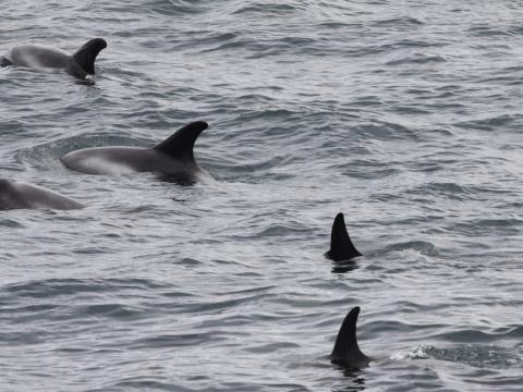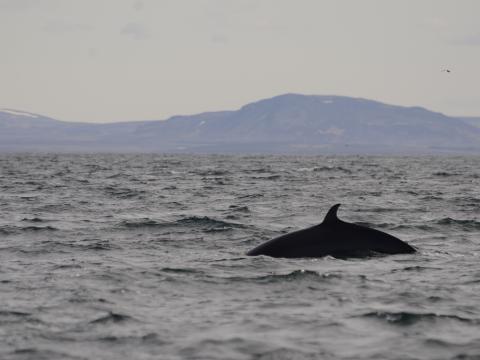 Report from Hafsúlan: The afternoon tour started very nicely with a pod of 6 white-beaked dolphins after only 40 minutes of sailing. In the pod we found an old friend of us in the dolphin Montgomery, seen on our tours since 2012. After we left the dolphins we started to search for the minke whales seen on the morning tour. We had all together 4 sightings of at least 3 minke whales. They were very elusive and only surfaced once in the same place. When we had started to head back, one passenger spotted a blow in the distance. It proved to be another minke whale when we got a good look at it. A pod of 5-6 harbour porpoises made a short visit around the boat on our way back as well, ending the tour in a very nice way.