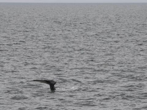 Tour at 9:00Report from Hafsúlan : The seas was calm and the sun tried to peak through the clouds as we headed out this morning. The sail was quite nice and after about 40 minutes we spotted a big blow in the distance! As we got closer we were thrilled to see that the blow was from a beautiful ful Humpback Whale. The animal surfaced around the boat, taking long deep dives in between and showing us it's fluke. The whale seemed to be feeding as it changed direction constantly but was still always moving around the same area. We watched the humpback for over 40 minutes and then decided to head further out and search for something more so we wouldn't disturb the humpback to much. As we sailed around some passengers spotted a Minke Whale, but unfortunately it only surfaced once and then disappeared. On our way back to the harbour we spotted 10-15 Harbour porpoises spreaded around the area and we got a great look at them. While we were watching them a 2nd minke whale surfaced quite close. This animal was quite friendly and allowed us to get a good look at it while it surfaced a couple of times around us. After the minke took a deeper dive it was time to head back to the harbour, the sun was out and the sail was very enjoyable!Great morning tour with several cetaceans and a alot of interesting birds.- Freydís Ósk Birds seen on todays tours include: Fulmars, Arctic Terns, Black-backed Gulls, Eider-ducks, Northern Gannets, Atlantic Puffins, Kittiwakes, Great Skuas, Arctic Skuas & Black Guillemots