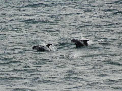Report from Eldey: The wind picked down a bit for our afternoon tour but it didn't mean that we hadn't had to face fierce north-winds. Nonetheless, the trip was epic with an incredible landscape and breathtaking scenery. It seemed that we were sailing in a big blue dessert until we could find our desire oasis. Out of nowhere and without any warning a pod of 6-8 white-beaked dolphins started to leap and jump in synchrony in the distance. Once we got closer we discovered the reason, they were actively hunting and they had time to come closer to us and check the boat with their usual curiosity. As a plus, hundreds of birds gathered around the dolphins to get some leftover (who says no to a free meal?). The way back was astonishing as the sun was setting creating incredible lights over Reykjavik.